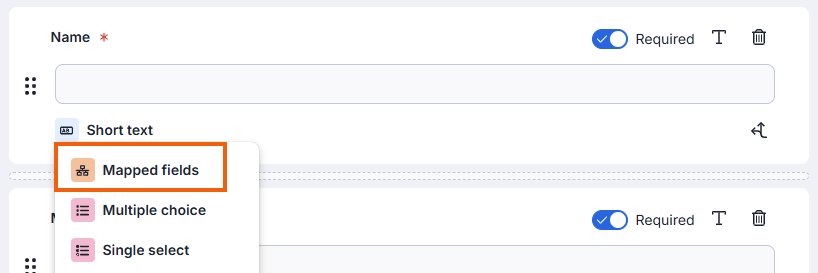 - If the component is not already a Mapped component, change it to a Mapped component by clicking on the bottom-left corner of the component and selecting Mapped fields.