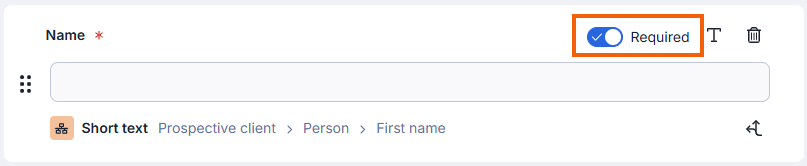 - On the top-right corner of the component, use the toggle switch to mark the field as Required.