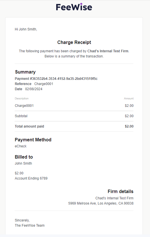 Clients who make a payment will also receive a receipt similar to the screenshot below: