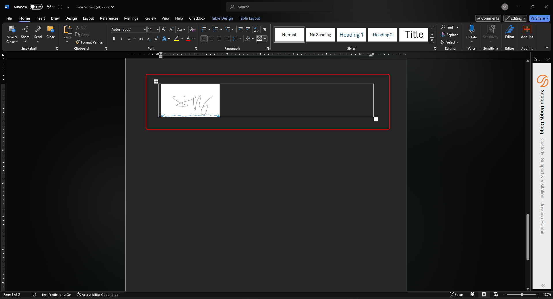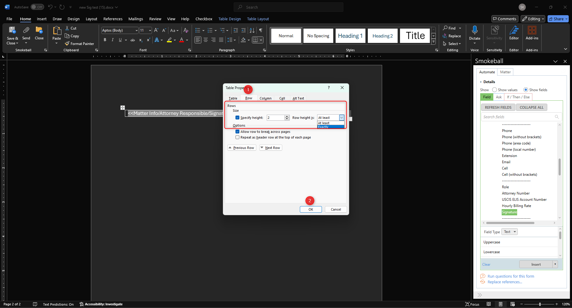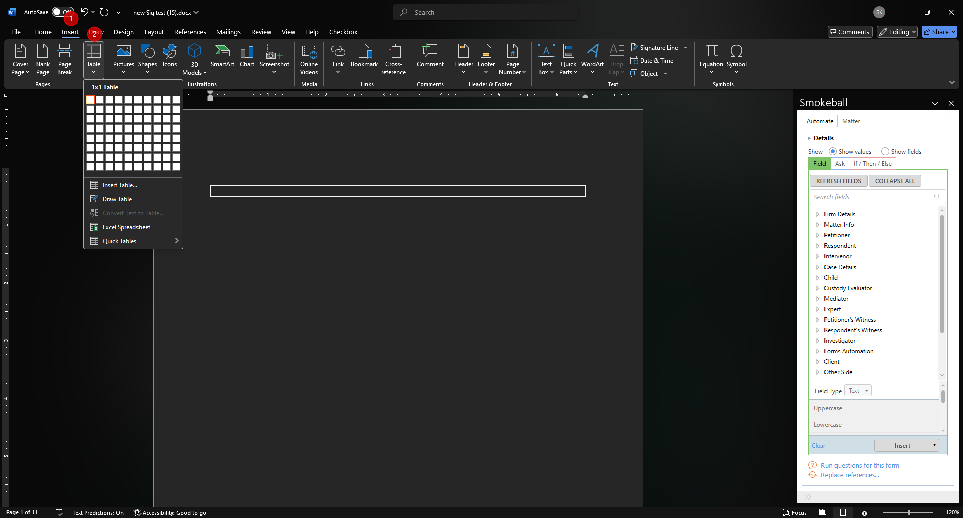 - On the Smokeball toolbar, toggle Show Values and re-size the image until it is fully visible in the table.
