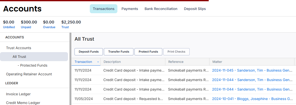 Smokeball Payments is an integrated payment solution for your firm that you can use to process transactions.