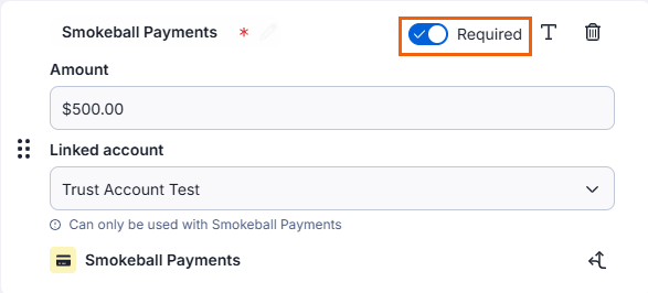 - Toggle the Required option on to make the completion of the Payment section mandatory.