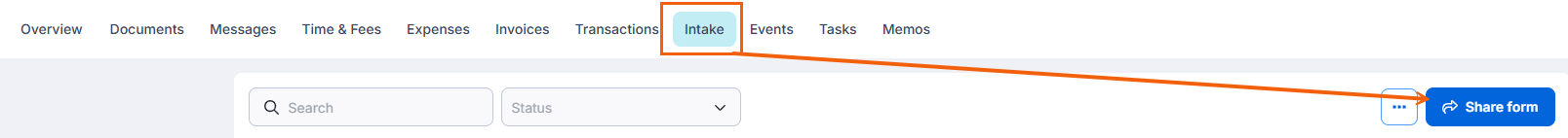 - Open your lead/matter and select the Intake tab.