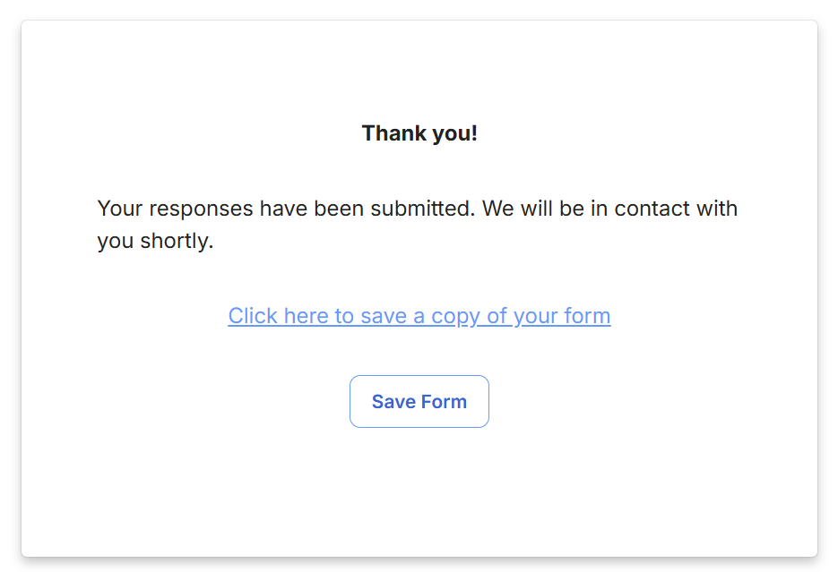 Your client will then receive a confirmation message and have the option to save the form for their records.