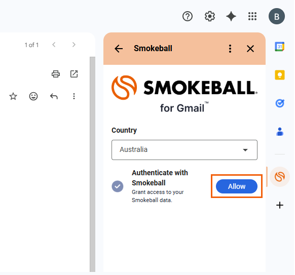 Once you have successfully installed Smokeball for Gmail, open your Gmail inbox. Click on the Smokeball icon on the right-hand panel to access the add-on.