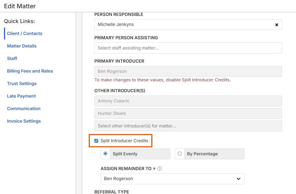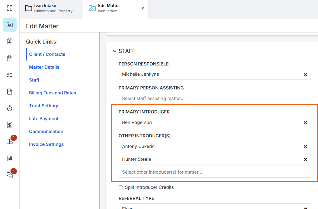 You can also add multiple Introducers from the Smokeball Desktop App, but we recommend doing so on the Web App so you can seamlessly follow the instructions below to enable Split Introducer Credits.
