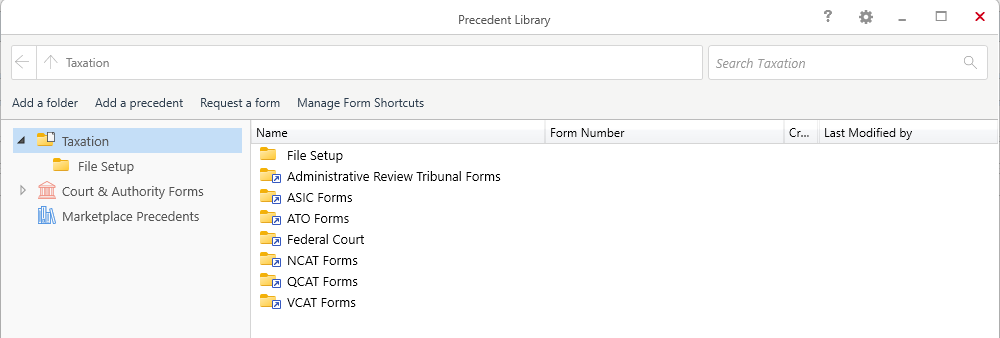 It also includes short cuts to the Court & Authority Forms Administrative Review Tribunal Forms and ATO Forms folders: -
