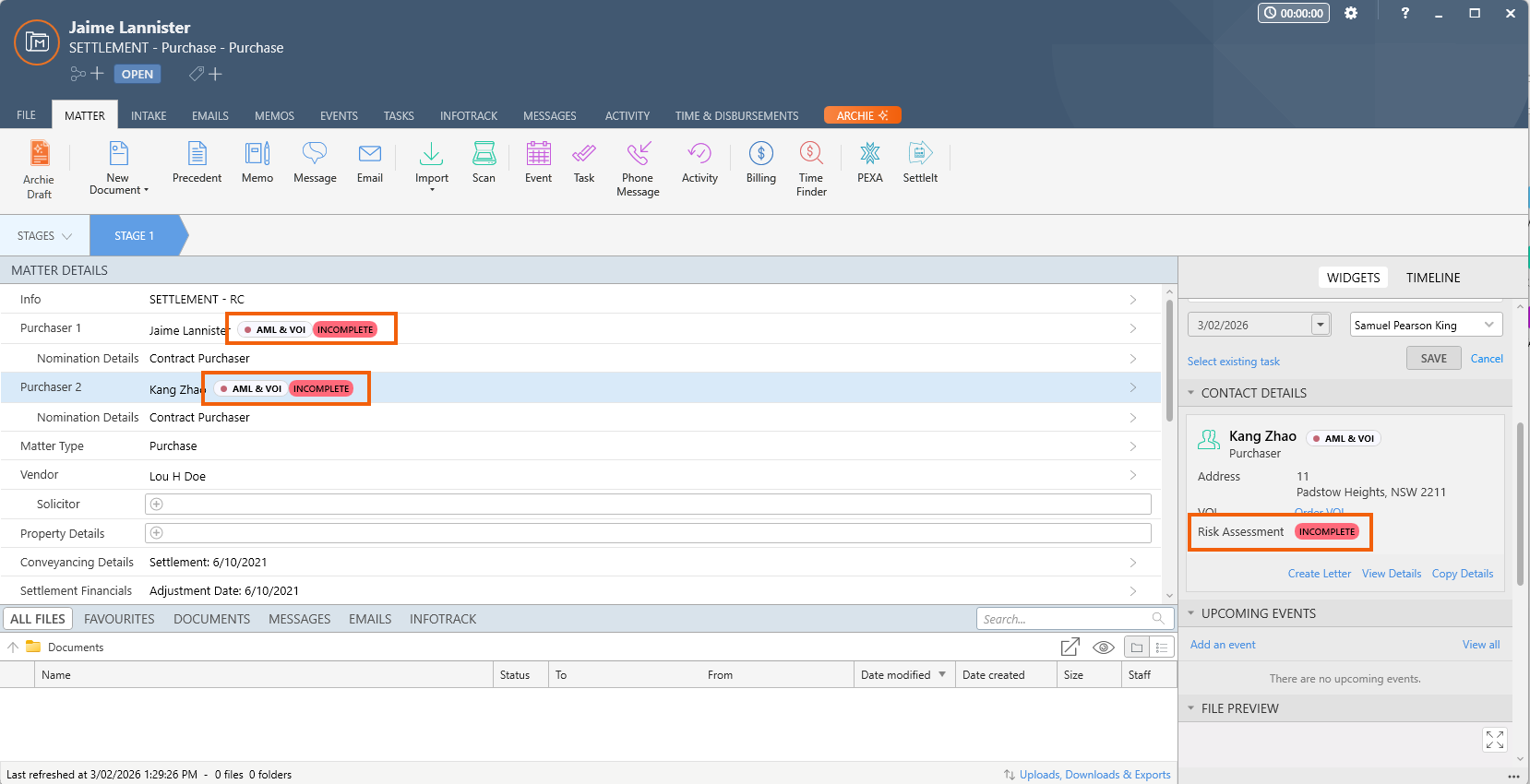 AML-related fields on existing and future contact cards in the Smokeball Desktop App: