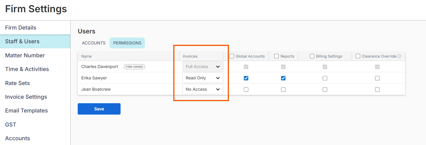 We have added permissions to Invoices and Firm Settings to the Smokeball Web App: