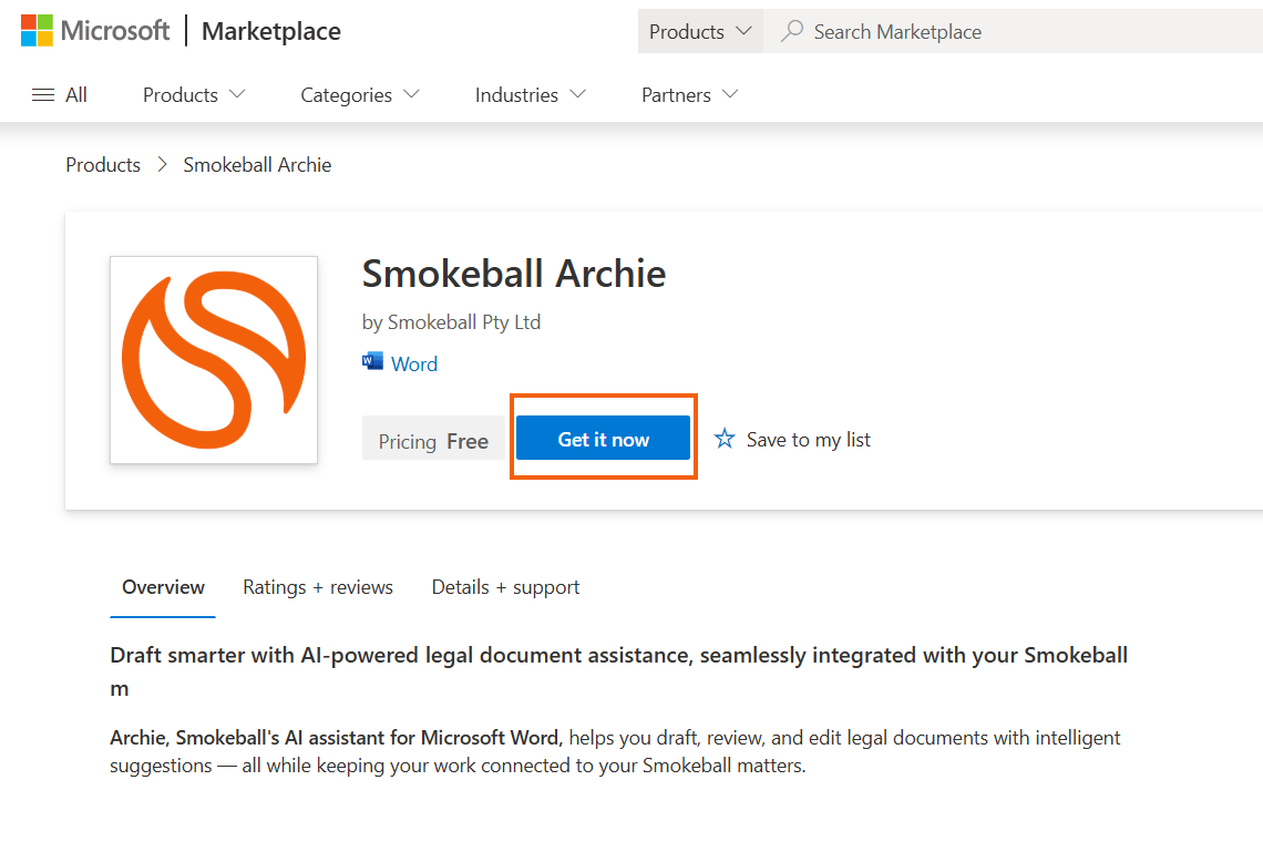 - Search for "Archie" and install the Smokeball Archie add-in.