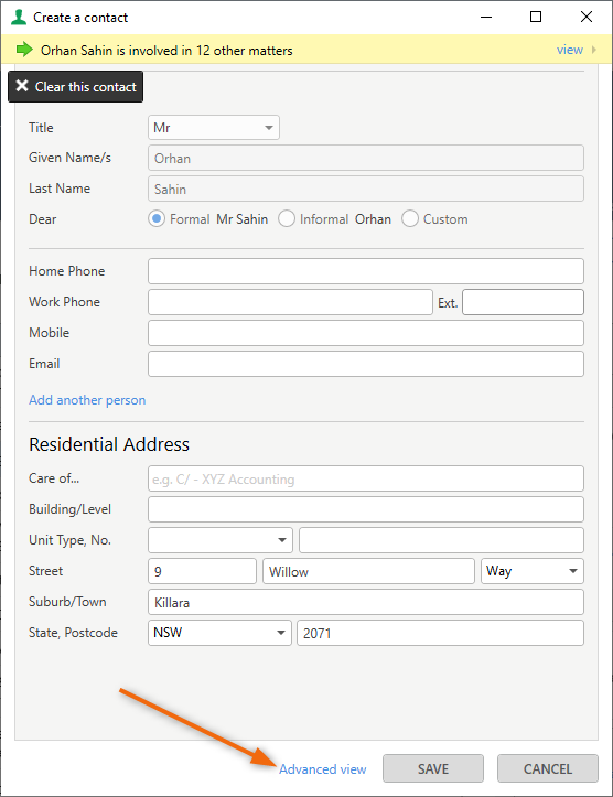 - Go to Advanced View on the Contact Card (or simply re-open an existing Contact Card):