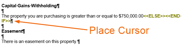 Highlight the paragraph that you want to appear if there is an Easement on the property and cut this information