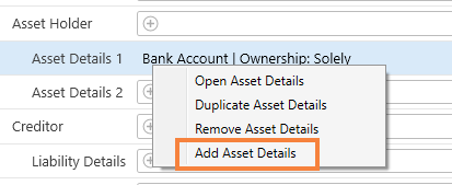 To add multiple assets, right-click on the Asset Details line and select Add Asset Details.