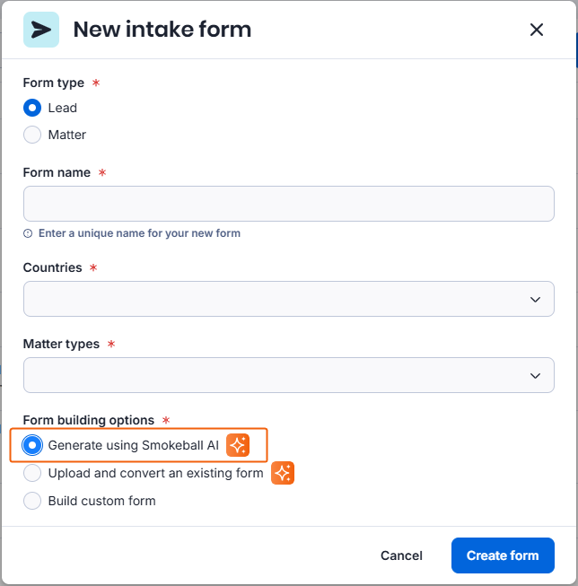 Learn how to create a Lead or Matter Intake Form from scratch using Smokeball AI.