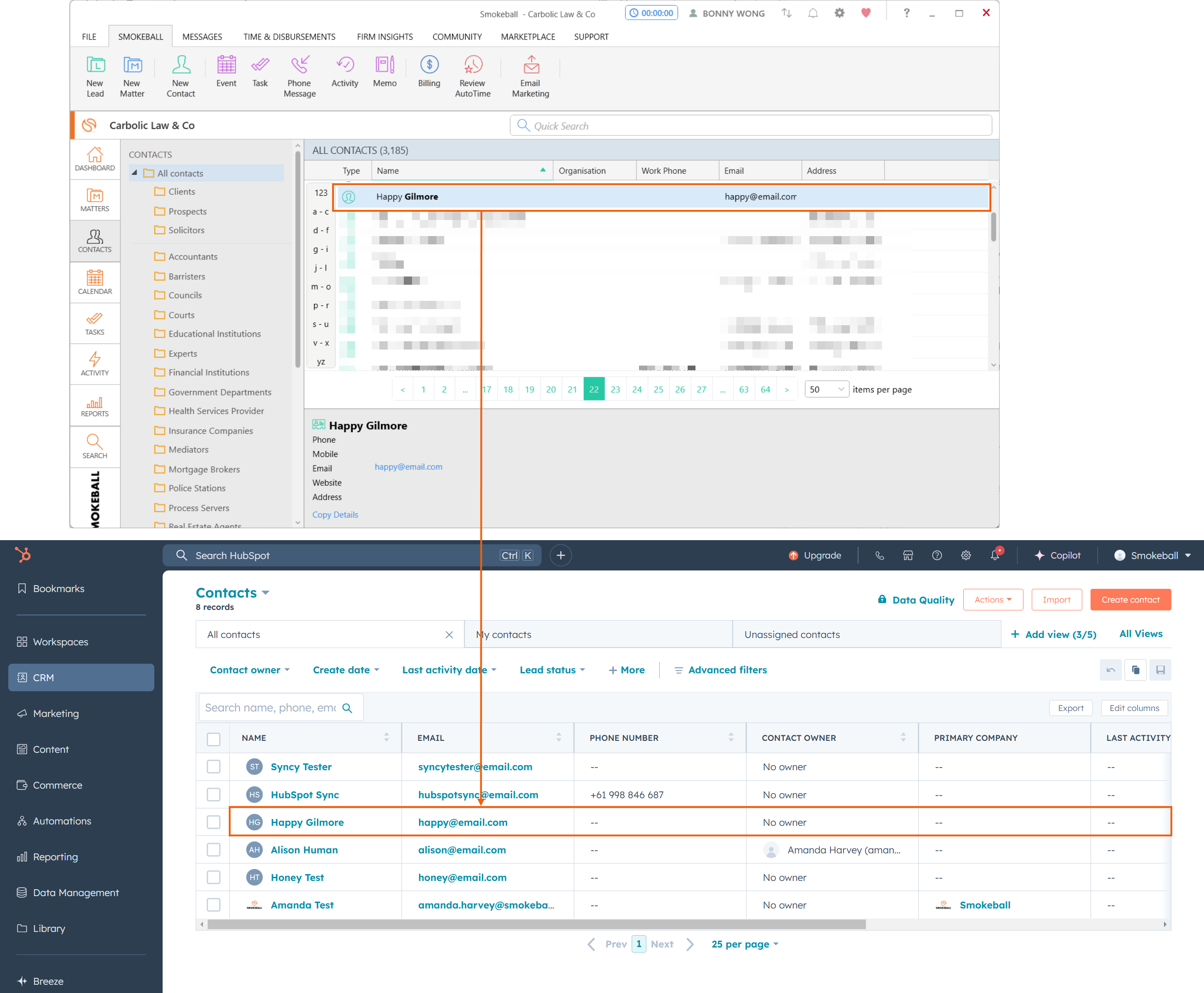 If you chose to sync contacts from Smokeball to Hubspot, it may take up to a few minutes for the contact entry to appear in HubSpot.