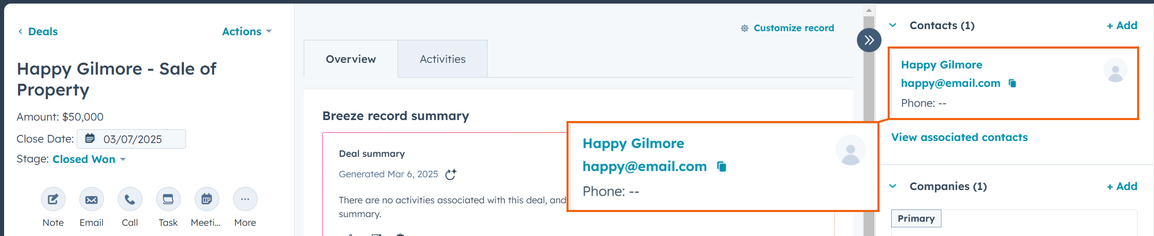 To ensure the matter is created correctly, the contact must be listed under the Contacts section of the Deal. If the contact is missing, the matter will not be created in Smokeball.
