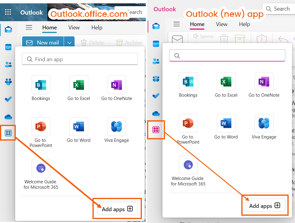 - Select the Apps icon on the left panel and then select Add apps.