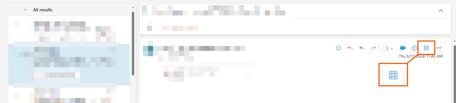 - Select an email and click on the Apps icon on the right-hand corner of the email.