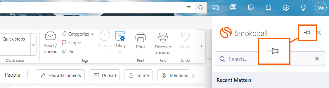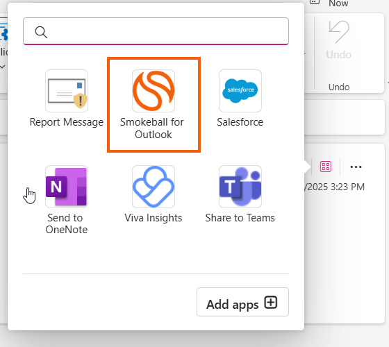 - Select Smokeball for Outlook. The Smokeball toolbar will appear from the right-hand side of the screen.