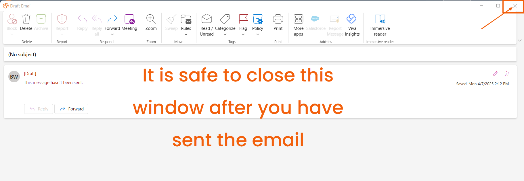 Disregard the "[Draft] This message hasn't been sent." messaging.Â