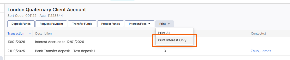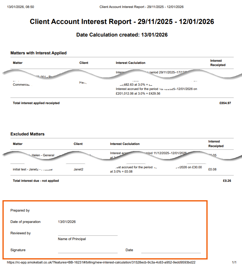To remain compliant with the SRA Accounts Rules, the system generates an Audit Report whenever the Interest Calculator is used.