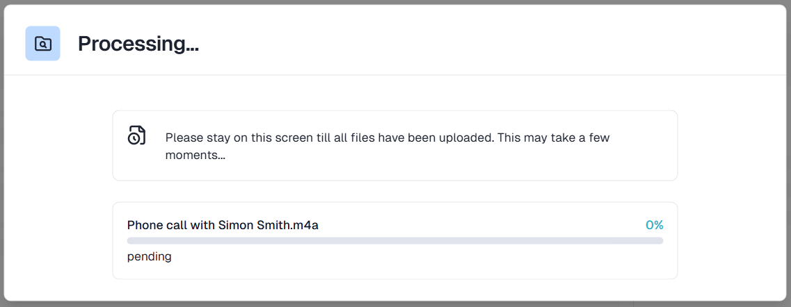 6. Archie will begin transcribing your file. This may take longer for larger file sizes. Do not navigate away from this screen.