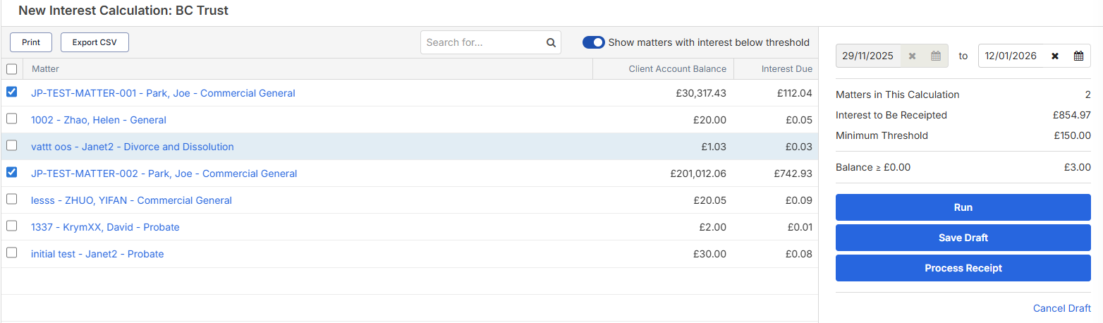 Smokeball Grow and Prosper+ Releases April 2026 Updated 09 April 2026 04:42 9 April, 2026We have introduced a Client Account Interest Calculator in the Smokeball Web App that allows you to accurately calculate, fairly allocate, and bulk-apply client account interest.Learn how to set up and use the Client Account Interest Calculator.