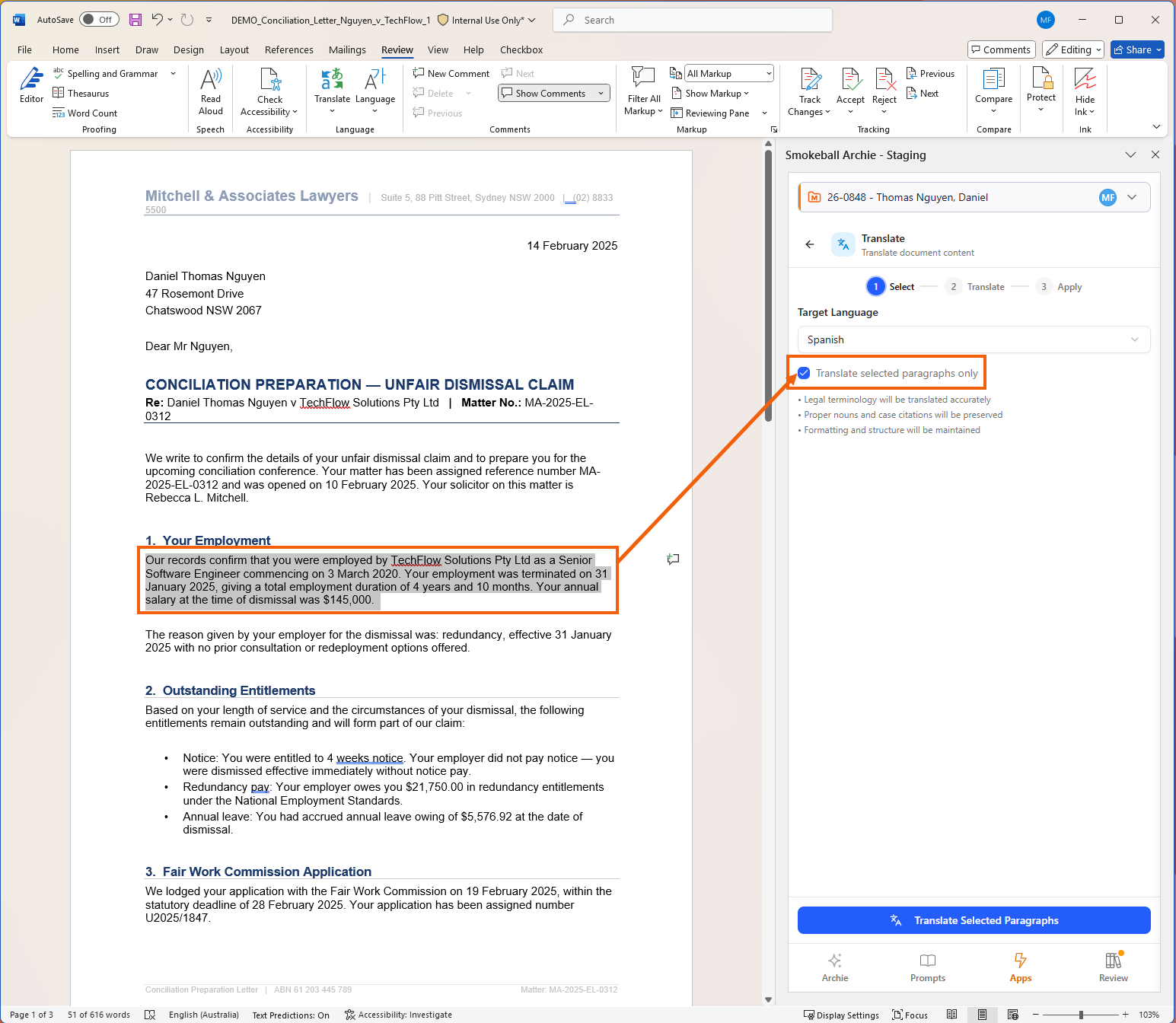 Playbook Name: Unfair Dismissal Conciliation Letter Review