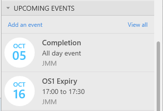 The Upcoming Events Widget will show the next two upcoming Calendar Events for a matter.