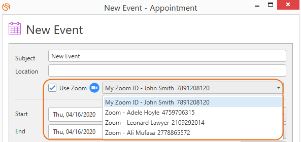 The event will automatically assign your Zoom Personal Meeting ID. If you wish to assign a colleagues they will be available in the drop down.