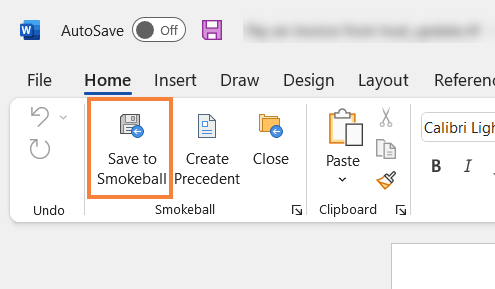 If you are saving the document for the first time, select the Save to Smokeball button and then choose which matter to save the document to.