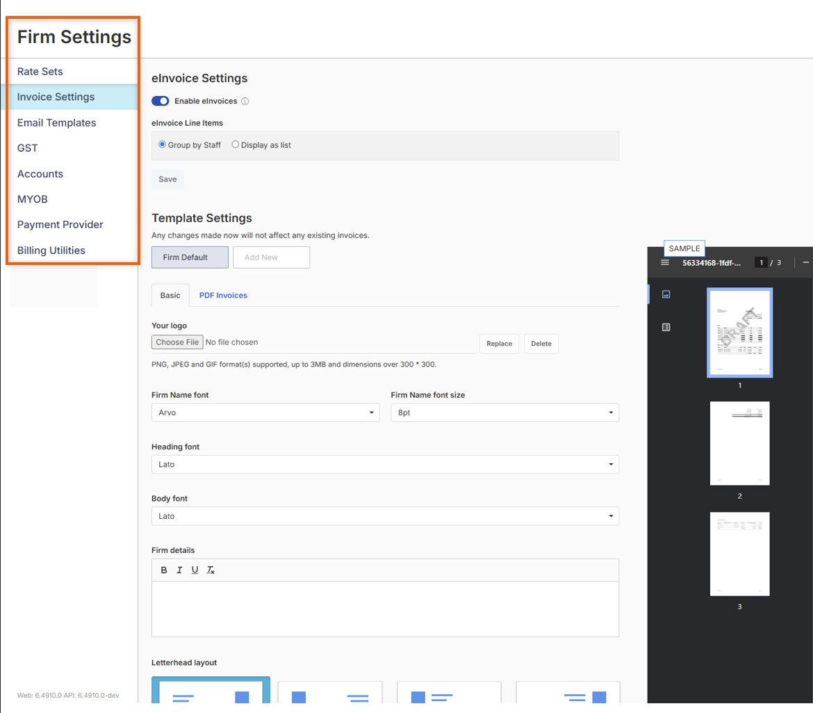 In addition, the staff member can only access billing-related settings in the Firm Settings of the Smokeball Web App: