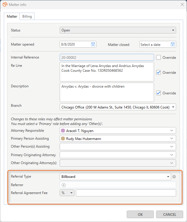 - Along with Attorney Responsible and Person Assisting, this field is important for reporting purposes. If things like Referrals or Income Allocation are important for calculating bonuses, you will want to complete this field.