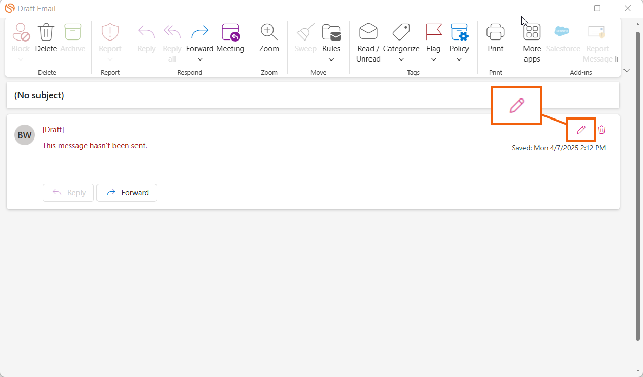 Disregard the "[Draft] This message hasn't been sent." messaging.Â