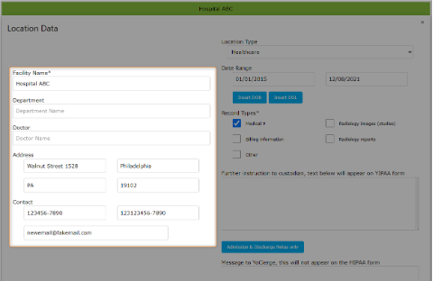 3. As you move forward in the order, YoCierge will populate the contact details of the medical providers from the  Medicals & Settlement Details.Â