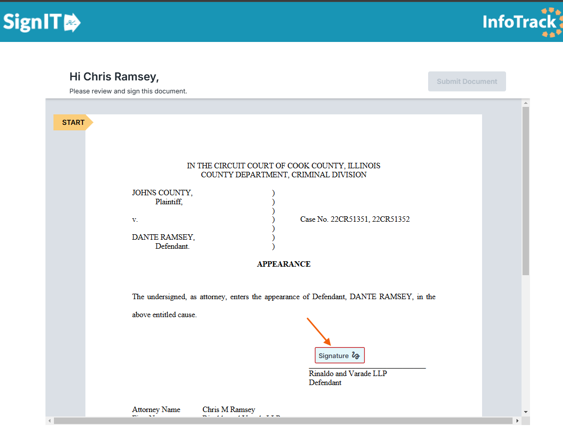 Create and accept electronic signatures with InfoSign or DocuSign. You do not have to have a DocuSign subscription, and all documents can be filed automatically in Smokeball. Learn more about electronic signatures |