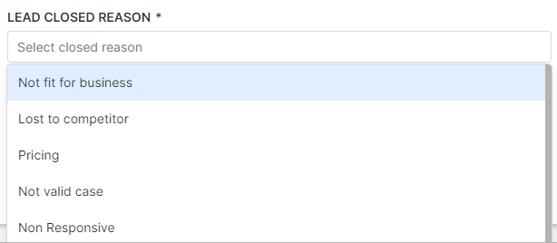 - Select a reason from closing the lead from the Lead Closed Reason drop-down menu.